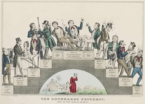 Zaczyna się niewinnie, od kieliszka wypijanego wspólnie z przyjacielem, następnego, by ogrzać się w chłodne dni, poprzez radosne biesiadowanie, do samotności, biedy i w końcu śmierci. Tak Nathaniel Currier przedstawiał drogę XIX wiecznego pijaka, od pierwszego kieliszka do grobu. Czy historia ta jest jednak aż tak prosta? Co właściwie oznaczało być trzeźwym w XIX wieku? Jak definiowano pijaństwo i alkoholizm? Co uznawano za alkohol? Odpowiedzi na te pytania wydają nam się dziś łatwe i oczywiste, ale badania nad kulturową historią alkoholu wskazują, że pojęcia trzeźwości, pijaństwa czy alkoholu są społecznie i kulturowo konstruowane i zmienne.
