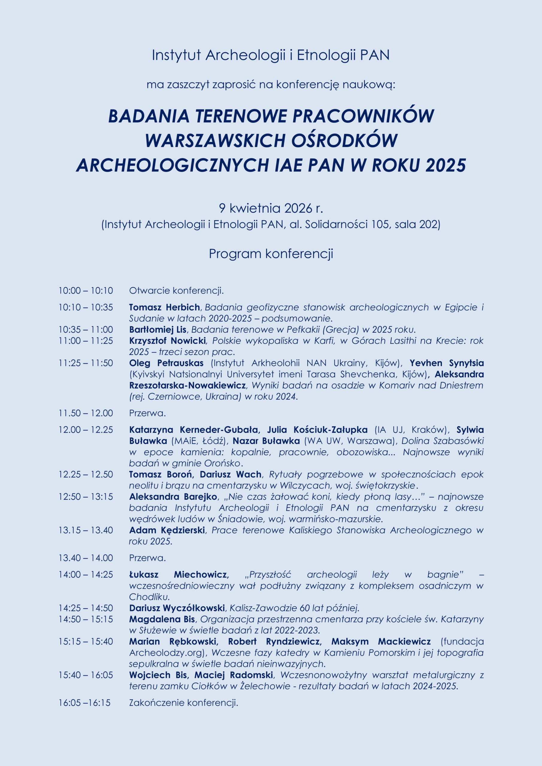 Konferencja “Badania terenowe pracowników warszawskich ośrodków archeologicznych IAE PAN w roku 2025”