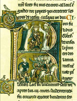 Koronacja Baldwina I na króla Jerozolimy (źródło: Chronique de Guillaume de Tyr (XIII wiek) BnF, Manuscrits (Fr 9081 fol. 99v) - https://classes.bnf.fr/idrisi/grand/3_07.htm)