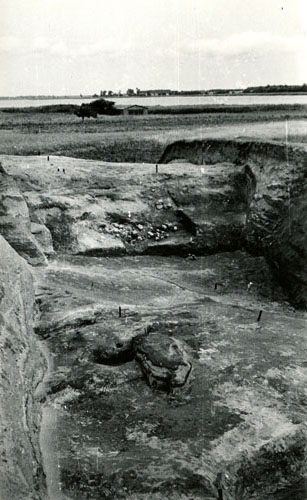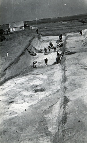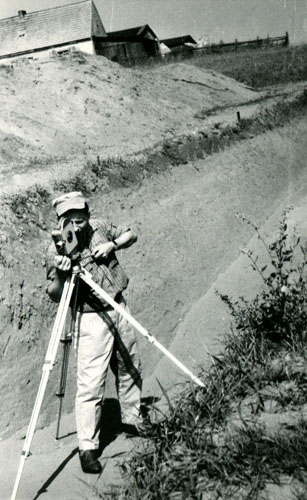 Srebrne Wzgórze, Władysław Filipowiak w trakcie dokumentacji filmowej wykopu, 1963 r.