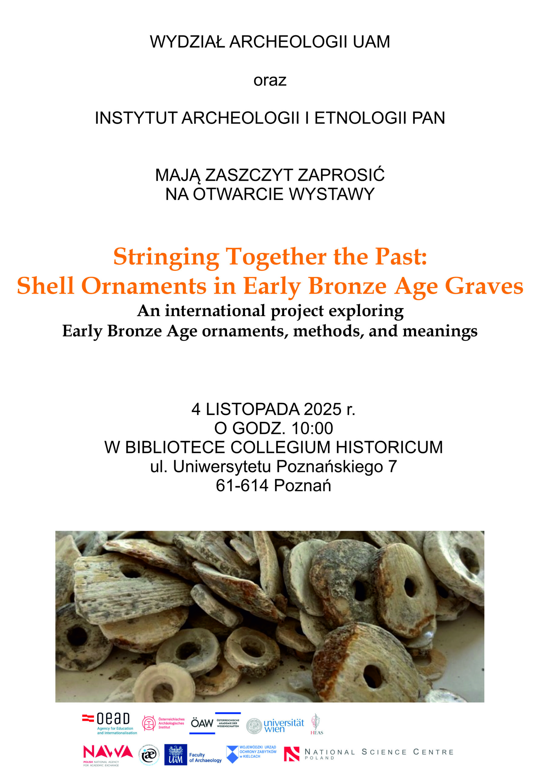 Zaproszenie na wystawę “Stringing Together the Past: Shell Ornaments in Early Bronze Age Graves “