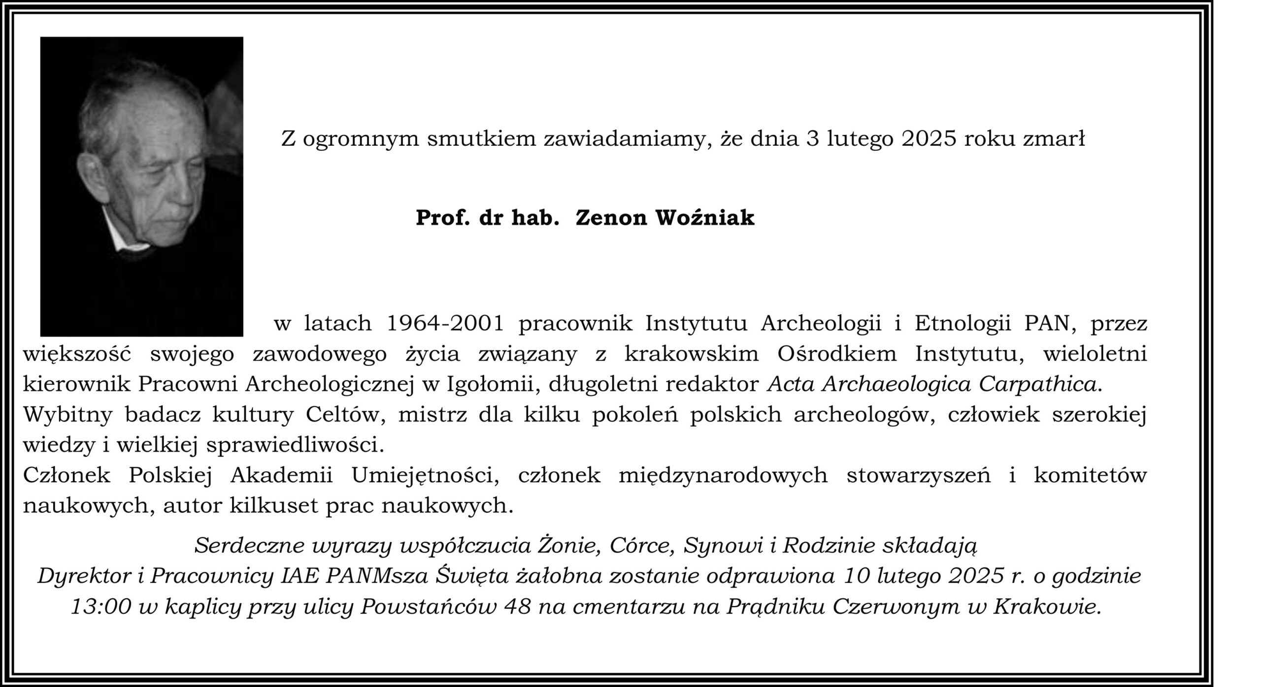 Ze smutkiem informujemy o śmierci prof. dr hab. Zenona Woźniaka